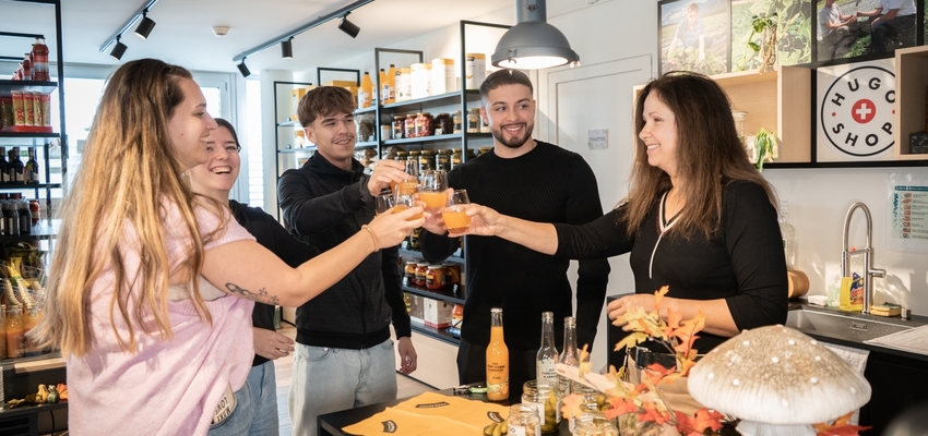 - Verkostung: Da es nichts Besseres gibt, als in ein Cornichon zu beissen, um die ganze Geschichte seiner Herstellung zu verstehen, probieren Sie die Reitzel-Produkte in unserem HUGO-Shop, um Ihren Besuch abzuschliessen.
